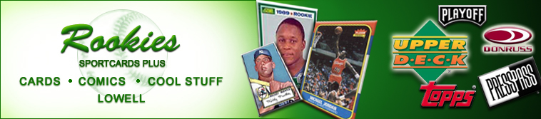 Rookies Fantasy Football Contest 2013 Fun and easy with a $5.00 Gift Certificate for the weekly winner! Just buy a pack to play! Weekly Winners and Season Standings are posted on Facebook! Prizes At the end of the season, prizes will be randomly drawn from the weekly winners (one entry per week won) and the top three scorers (#1 gets 3 entries, #2 gets 2, #3 gets 1). 1st Place: Box of 2013 Topps Football Hobby 2nd Place: Football Mini-Helmet, any team 3rd Place: $10 Gift Certificate All winners (including weekly winners of $5 store credit) will be posted in the store, in our weekly e-mails (www.rookies-sportcards.com to subscribe), on Facebook and via our web-site. All winners have two weeks to claim their prize! How to Play Visit Rookies and buy at least one pack of 2013 football cards. Get your official entry form, fill it out and turn it in (you can also download an entry form from our website, but you still need to turn it in at the store). Try not to miss any weeks for the best chance to win! Entries will only be accepted in person at Rookies. One entry per person per week, due by the close of business Saturday. In weeks with Thursday games, entries must be in before the games start to include players from those games. Choose players from the list or write in your own. Choose the following number of players from each category: 1 Quarterback / 2 Running Backs / 2 Receivers / 1 Tight End / 1 Kicker Scoring Most combined points each week wins. 6 points for each rushing or receiving touchdown 4 points for each passing touchdown 3 points for each field goal 1 or 2 points for each extra point(s) Weekly Tie Breaker First tie breaker: person who guesses the correct winner of the Monday Night Game Second tie breaker: closest guess to the total points scored (without going over) Third: the Commissioner randomly selects the winner (by coin toss or drawing) |